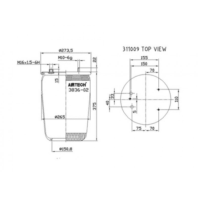 Пневмоподушка DAF 95XF 836M2 без склянки 513982